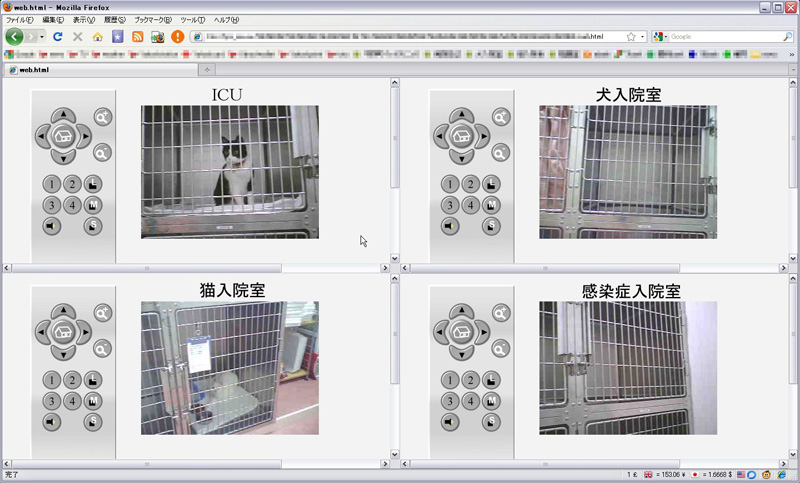 入院・ペットホテル中の映像・室温・湿度を24時間管理しています。緊張してしまう子も自然な状態を確認できます。外出先でもスマートホンで確認が可能で、常駐スタッフへの指示を行います。